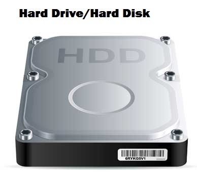 The hard disk,also known as the Winchester disk is a sealed unit in which is shiny, rigid magnetic disks or platters that are arranged vertically on a common axis as shown below